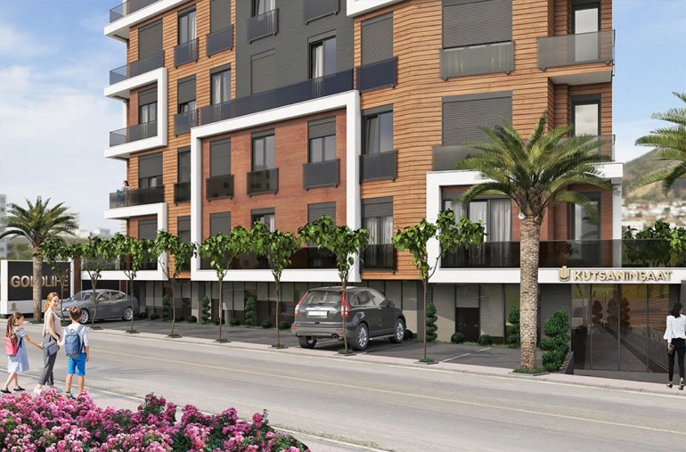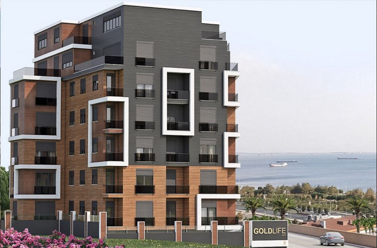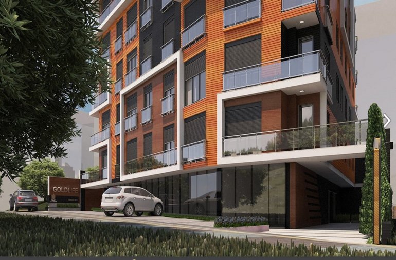 PROJE DETAYI: 828m2 Alan Üzerinde konumlanmış 3500m2 kapalı alan olarak inşaatı tamamlanmış olup 21 daire 1 iş merkezi olarak bitmiş iskânı alınmıştır. GOLDLIFE projemizin tüm ihtiyacını karşılayacak 300W Jeneratör, yangın ve su depoları, Dairenizden akıllı ev sistemi ile çağırabileceğiniz asansör, Özel yapılmış Açık otopark, detaylı peyzaj çalışması ile proje modern bir görünüme sahiptir.