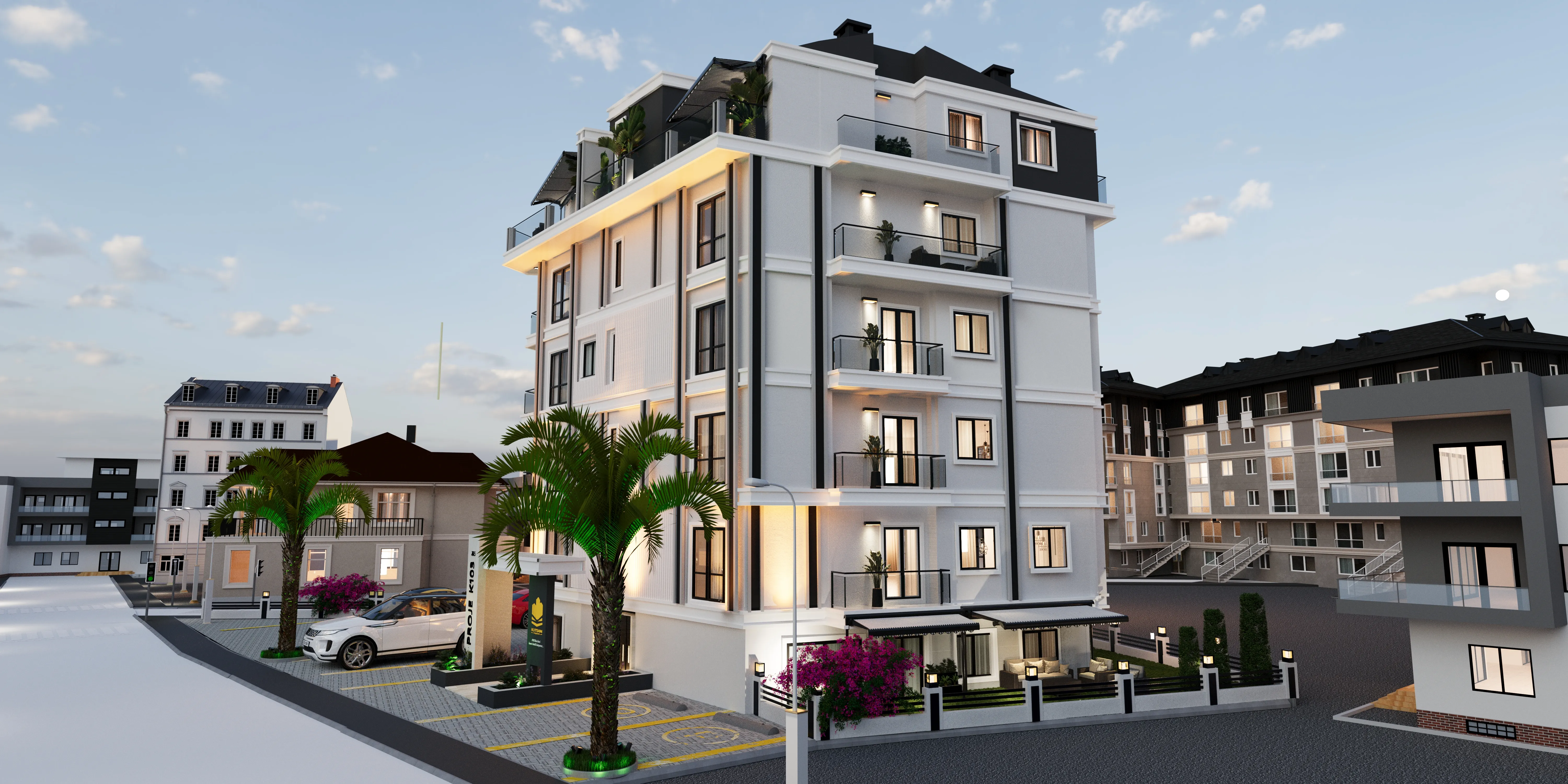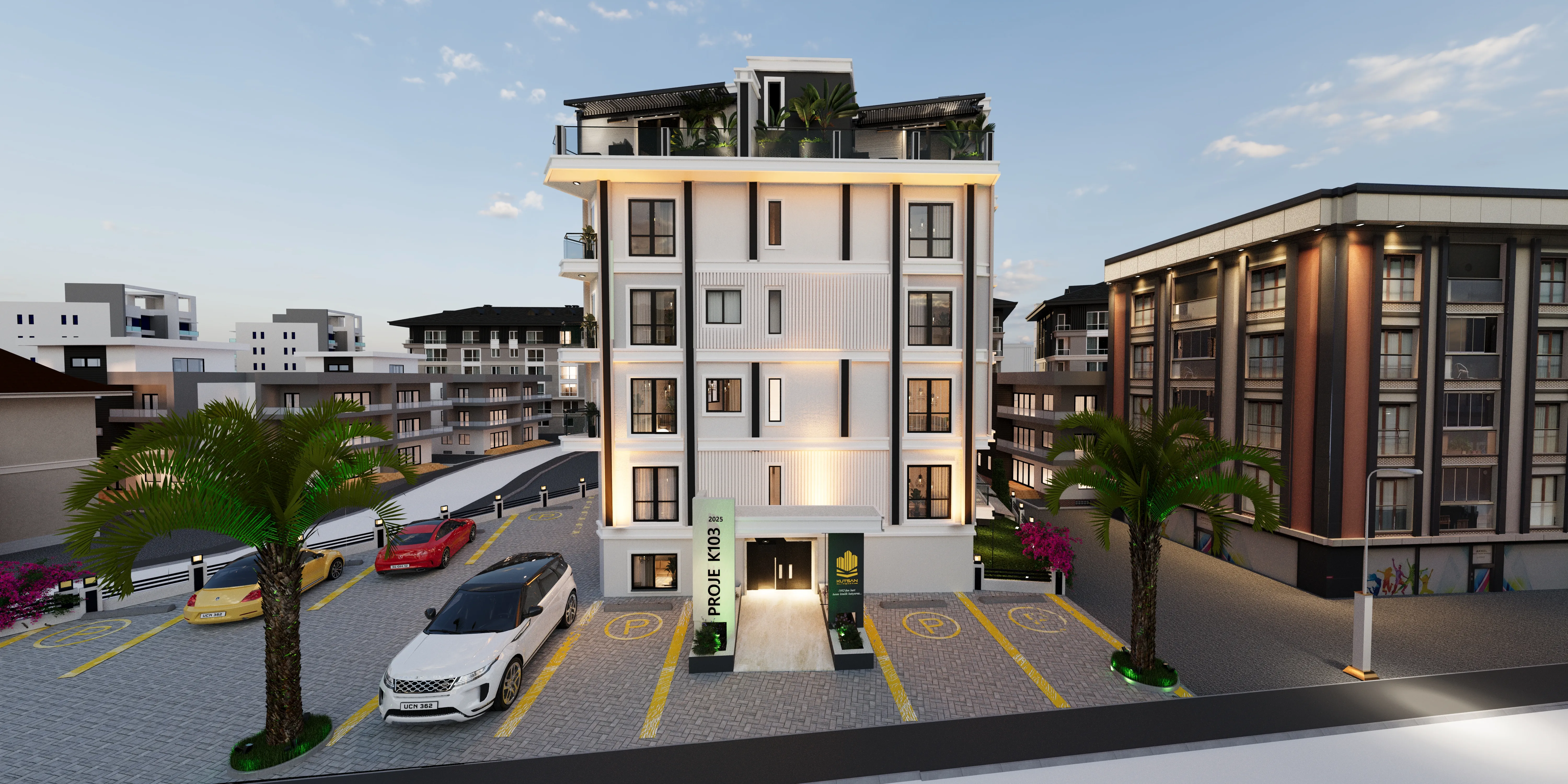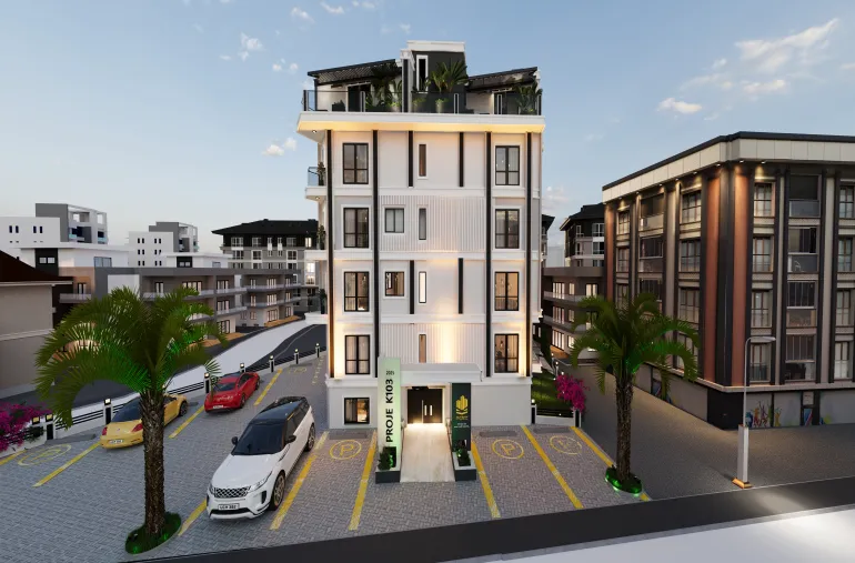 K103 Proje Detay: Binan çevresi özel bahçe ve otopark olarak tasarlanmış, 1. Bodrom katta otopark zemin katta özel otel konseptinde lobi olarak projelendirilmiş. Otopark dan, lobiden ve bahçeden dairelere asansör ile ulaşım rahatlığı sağlanmış, modern ve fonksiyonel olarak tasarlanmış her m²ye maksimum konfor katarak 01.09.2024 tarihinde İnşaat’ına başlamıştır.