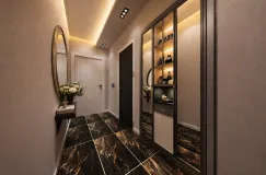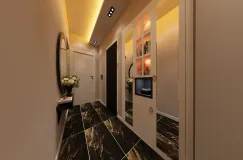 tasarlanmış, 1. Bodrom katta otopark zemin katta özel otel konseptinde lobi
