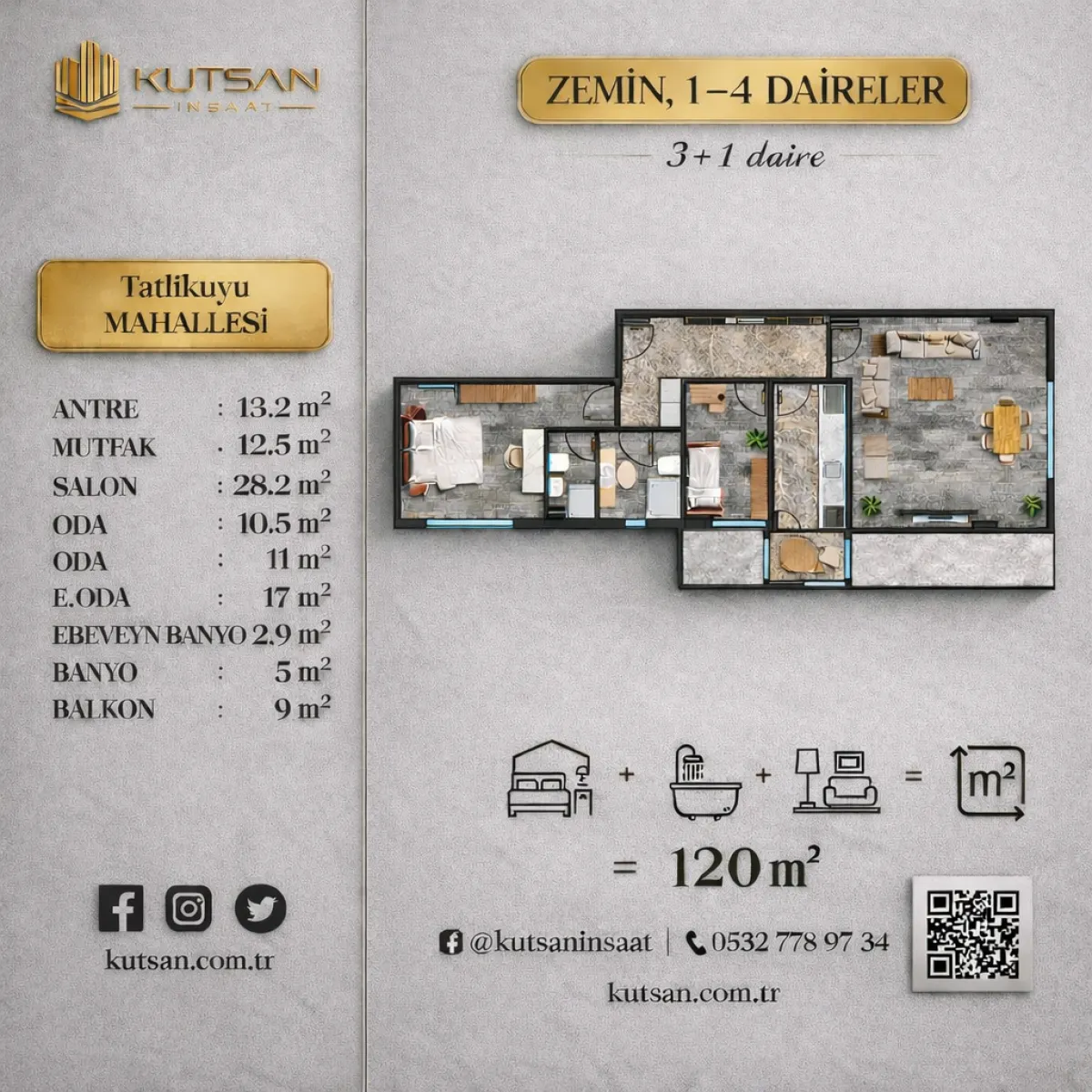 odalarıyla hem konfor hem de değer bir arada sunulmaktadır. Kutsan İnşaat